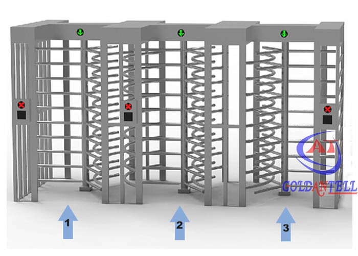 Trzy pasy 2250 mm Bramka obrotowa o pełnej wysokości Biometryczny skaner twarzy Licznik Led